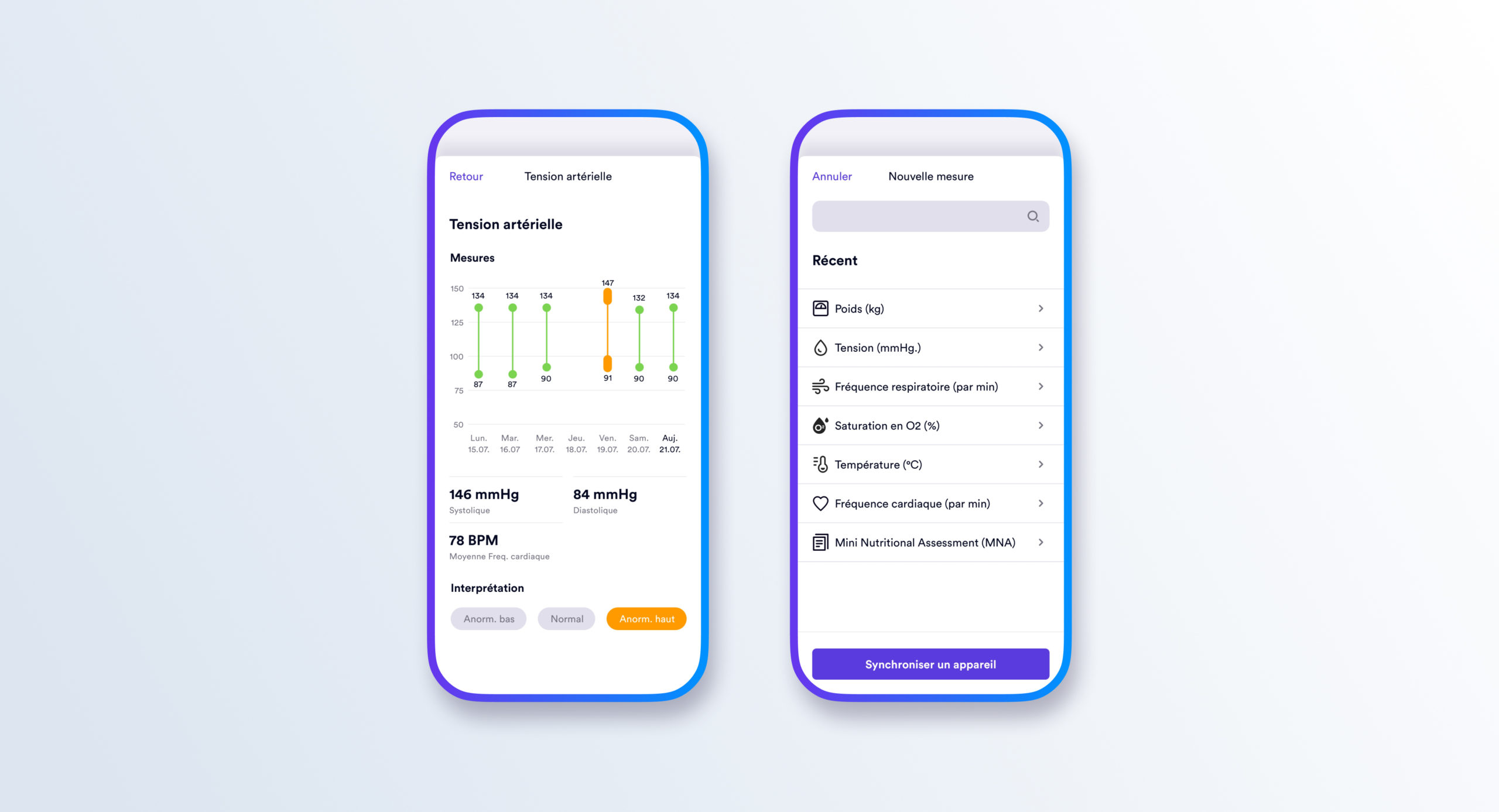 Accès à l’historique, aux tendances et aux rapports pour une meilleure compréhension et anticipation des rendez-vous médicaux.