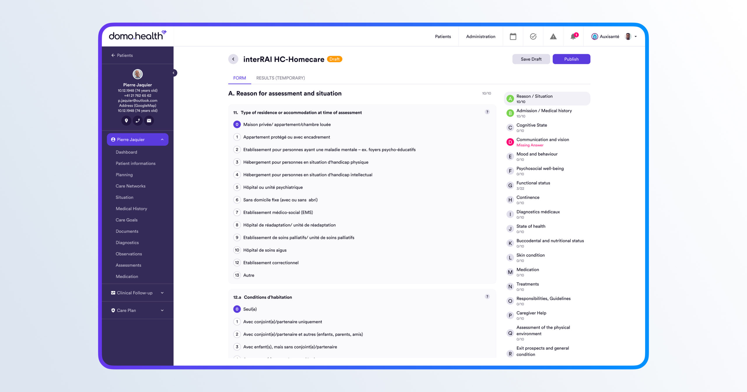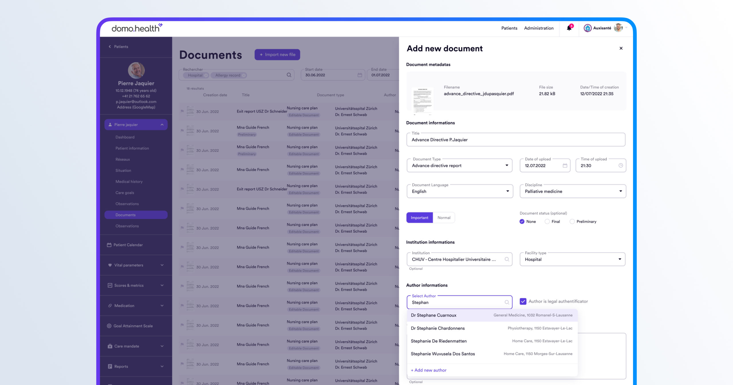 Accès et partage sécurisé des données médicales, évaluations InterRAI et documents cliniques, conforme aux exigences légales suisses (nLPD, RGPD).