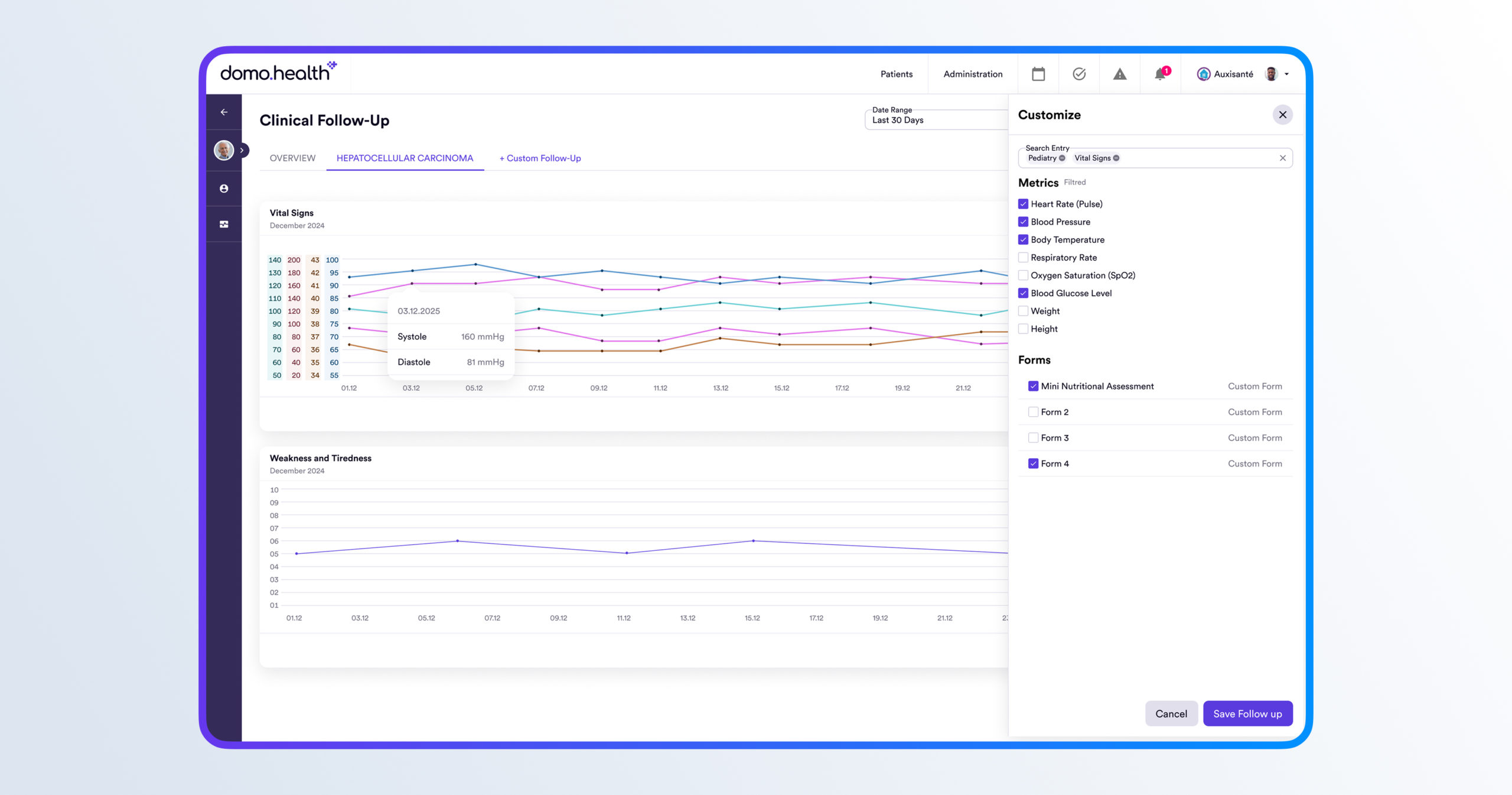 Accès à l’historique, aux tendances et aux rapports pour une meilleure compréhension et anticipation des rendez-vous médicaux.