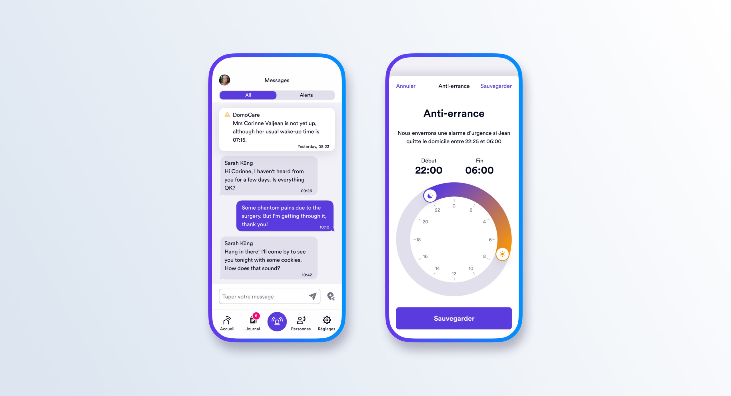 Lors de changement d’habitude notable, l’application peut déclencher des alarmes en direction des proches aidants et soignants.